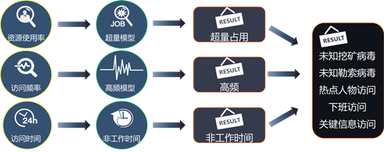 異常行為感知以終端和網(wǎng)關(guān)采集的安全數據為基礎,從多維度對異常行為進(jìn)行建模分析,實(shí)現對未知網(wǎng)絡(luò )攻擊、終端異常、數據泄露行為的感知。同時(shí),通過(guò)技術(shù)工具,結合異常行為特征實(shí)現對威脅行為的誘捕。
