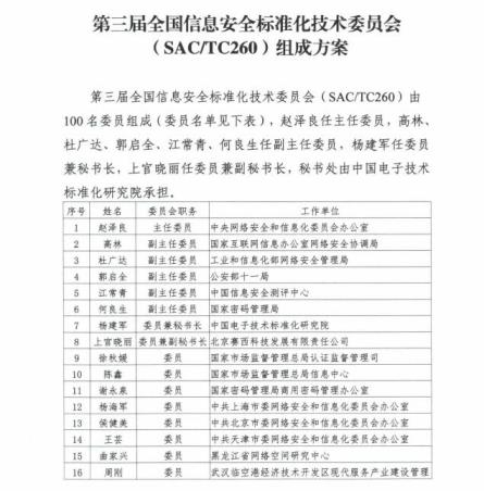 全國信安標委成立于2002年,是國家信息安全標準化工作的歸口管理單位,主要職責為組織信息安全國家標準的制定,包括安全技術(shù)、安全機制、安全管理、安全評估等信息安全領(lǐng)域的標準化工作。