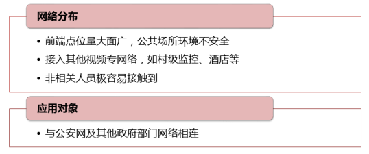 1 、整體安全管理缺失風(fēng)險:“重應用,輕安全”的建設方式導致視頻專(zhuān)網(wǎng)安全缺乏統一規劃和統一管理。