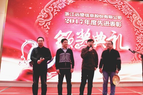 ? ? ? 瑞雪兆豐年。杭州明豪國際酒店里,暖氣襲人,遠望信息2017年度總結暨表彰大會(huì )在這天如期召開(kāi)。來(lái)自全國各地分公司/辦事處員工代表、總部員工以及公司股東代表等300余人,把近千平米的宴會(huì )大廳擠得滿(mǎn)滿(mǎn)當當;五湖四海的遠望人齊聚一堂,共慶豐收喜悅,展望新年藍圖。