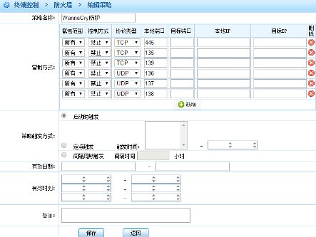 ? ? ? 從管理界面打開(kāi)“防火墻”策略,并按如下配置后分配到所有設備。