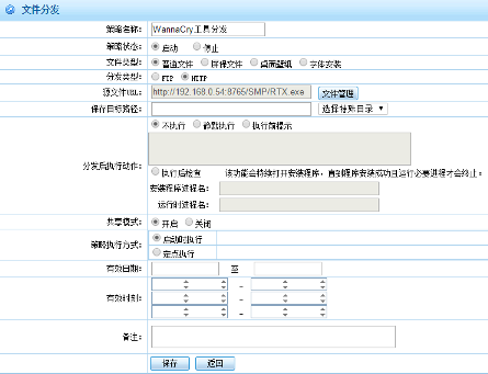 ? ? ??從管理界面打開(kāi)“文件分發(fā)”策略,將修復工具(第三方提供)分發(fā)到所有感染的設備,然后通過(guò)2.3評估感染消除情況。
