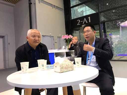 圖:鄔江興院士(左)與傅如毅在遠望信息展區親切交流