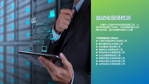 系統提供專(zhuān)用的測評工具,可有效提升技術(shù)測評項的檢測效率,并實(shí)現測評工具與業(yè)務(wù)流程管理系統的自動(dòng)化數據對接,使測評工作高效便捷、有據可依。