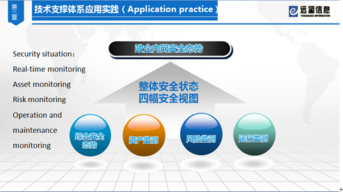 在題為《信息安全管理技術(shù)支撐體系應用實(shí)踐與標準化思考》的主題演講中,周征宇向各位與會(huì )嘉賓詳細介紹了信息安全管理技術(shù)支撐體系的設計思路、體系應用實(shí)踐以及體系標準化思考。風(fēng)險驅動(dòng)、體系驅動(dòng)、目標驅動(dòng)是信息安全管理技術(shù)支撐體系設計的三大思路。而在體系應用實(shí)踐方面,作為信息安全管理技術(shù)支撐體系的載體,遠望信息安全管理技術(shù)支撐平臺是融合安全事件、打通安全流程、發(fā)揮整體效能的重要技術(shù)支撐手段,可以實(shí)現系統對內網(wǎng)安全業(yè)務(wù)的操作與管理,從而達到內網(wǎng)資產(chǎn)可視化、風(fēng)險可視化和工作信息化的有序、可控目標。針對政企內網(wǎng)安全態(tài)勢管理,遠望信息安全管理技術(shù)支撐平臺主要通過(guò)綜合安全態(tài)勢、資產(chǎn)監測、風(fēng)險監測、運行監測四幅態(tài)勢圖來(lái)直觀(guān)展示內網(wǎng)整體安全狀態(tài)。