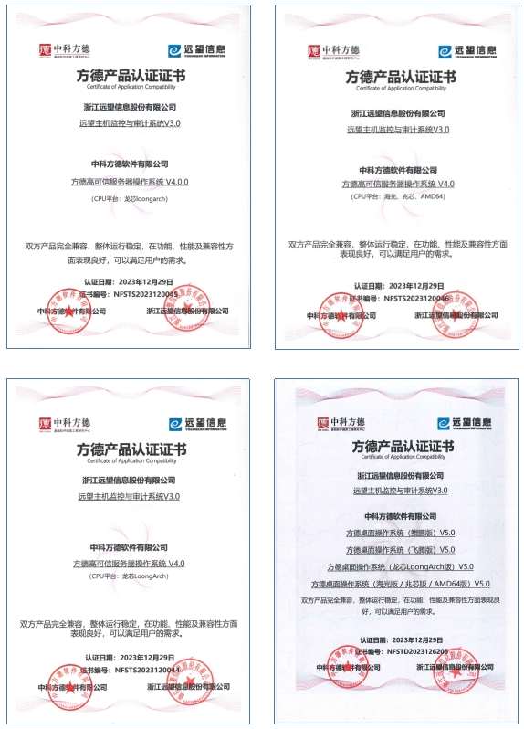 近日,遠望信息主機監控與審計產(chǎn)品與中科方德桌面操作系統以及服務(wù)器操作系統等多款產(chǎn)品順利完成產(chǎn)品兼容互認證。經(jīng)測試,雙方產(chǎn)品完全兼容,整體運行穩定,性能優(yōu)秀,可良好滿(mǎn)足用戶(hù)需求。