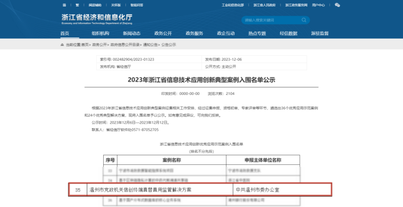 近日,浙江省經(jīng)信廳公布了2023年浙江省信創(chuàng )優(yōu)秀典型案例名單,由遠望信息助力溫州市委辦公室打造的“溫州市黨政機關(guān)信創(chuàng )終端替真用監管解決方案”成功入選2023年浙江省信創(chuàng )優(yōu)秀應用示范案例名單。