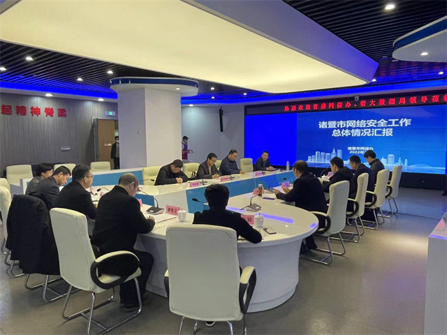 諸暨市委宣傳部副部長(cháng)、網(wǎng)信辦主任張利虎首先匯報了全市網(wǎng)絡(luò )安全工作總體情況,諸暨市大數據發(fā)展管理中心主任徐林煥匯報了政務(wù)網(wǎng)絡(luò )安全管控體系建設背景、方案、進(jìn)展等情況,由體系建設單位浙江遠望信息股份有限公司結合諸暨市政務(wù)網(wǎng)絡(luò )安全運營(yíng)平臺介紹了政務(wù)網(wǎng)絡(luò )安全管理思路和取得的實(shí)際成效。
